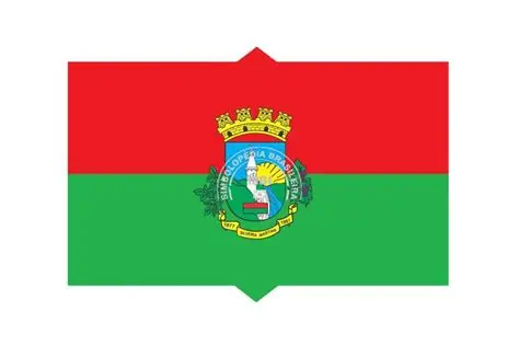 Sobre o campo branco, que constitui o fundo da bandeira, sobrepõem-se dois retângulos centrais medindo 1,00 metro de comprimento por 0,30 metro de altura, nas cores verde e vermelha, formando o conjunto simbólico ao centro, onde também se aplica o Brasão Municipal. O conjunto expressa equilíbrio e identidade cultural, reforçando visualmente os valores que estruturam o município.